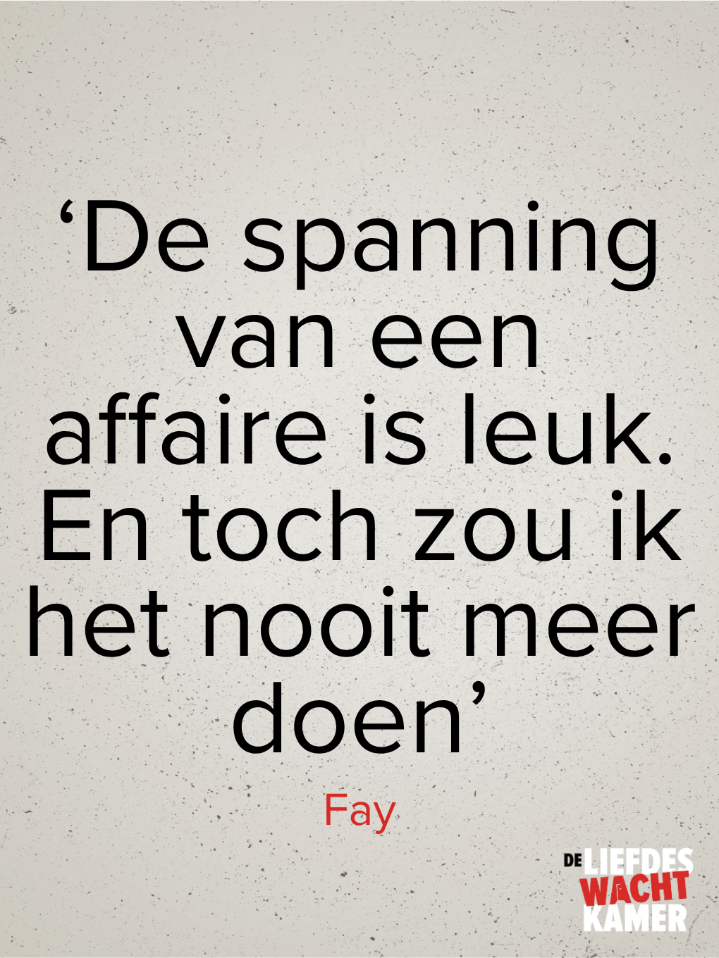 Een affaire kan verslavend zijn. De spanning, de intensiteit, het gevoel dat niemand jullie begrijpt. Toch komt er vaak een moment dat de bubbel knapt. Fay vertelt hoe het is om telkens beloftes te krijgen die nooit worden waargemaakt.